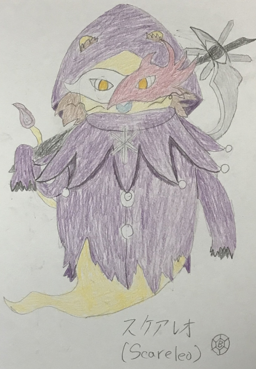 その後スケアレオへと転生し、同じ境遇のレムラムやミスチーバットに出会うも、上述の通りシャイな上にオバケ嫌いなので(自分も同じオバケであるにもかかわらず)気絶してしまう。