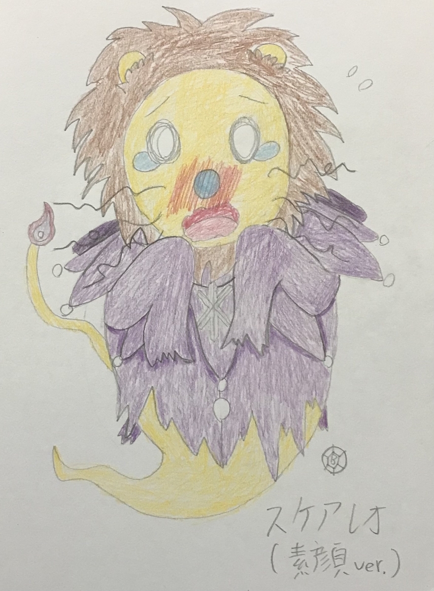 スケアレオの素顔も、オスのライオンをベースにしつつ魂はメスなので、男の子にも女の子にも見えるようにかわいく描きました。(今回こういうのばっかだな…)