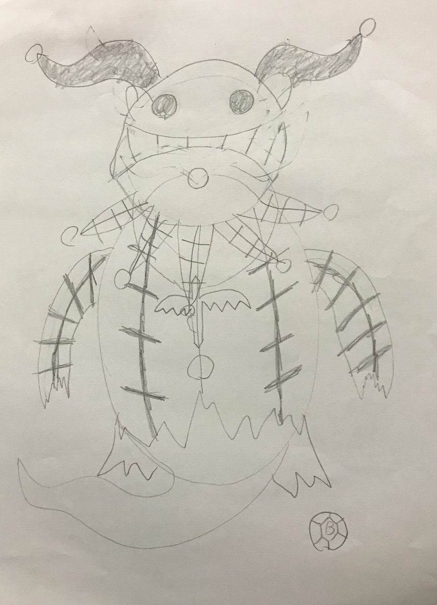 代わりに、以前描いたオバケ3人組と同じピエロ服を着た羊のオバケ「レムラム」を描こうと思い、そこから再出発しました。